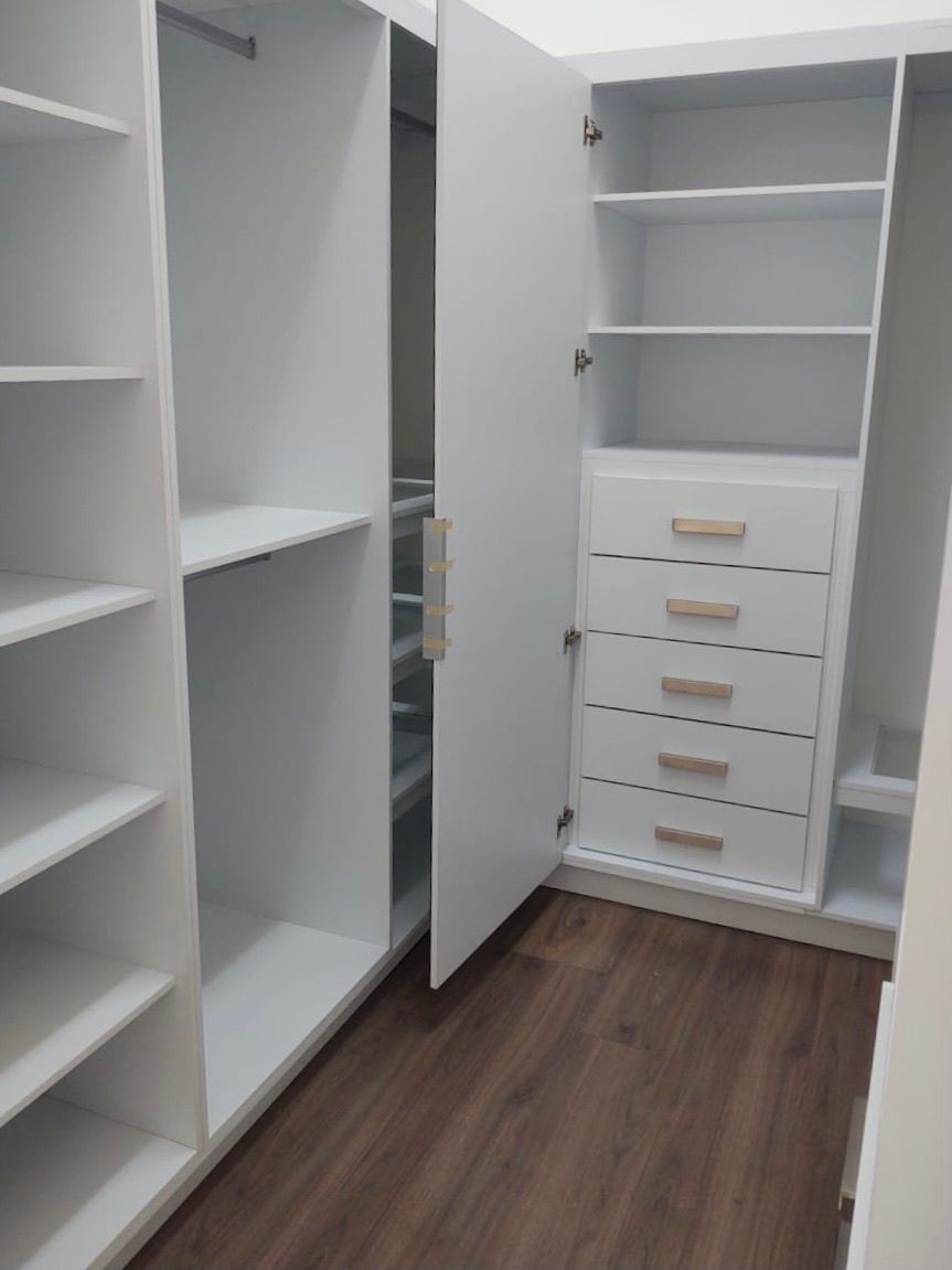 Utilizamos materiales de alta calidad y herrajes resistentes que garantizan durabilidad y un uso cómodo en el día a día. Desde closets sencillos hasta vestidores completos, cuidamos cada detalle en diseño, fabricación e instalación, ofreciendo resultados precisos y de alto nivel.